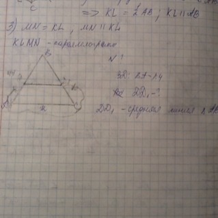 Не уверен что верно, сказал же что не вижу изображение, основание АС=половине DD1 так как средняя линия треугольника параллельна одной из его сторон и равна половине этой стороны. Нужно узнать АС. Треугольник ABC подобен треугольнику DBD1 по признаку УСУ. AD=AB-DB, и значит что AD=3х. И значит что DD1=2x так как находим среднее значение у равностороннего треугольника чему равно 4x и дели на два и получаем 2х. Завтра скажу правильно или нет, спать хочу ничего не соображаю