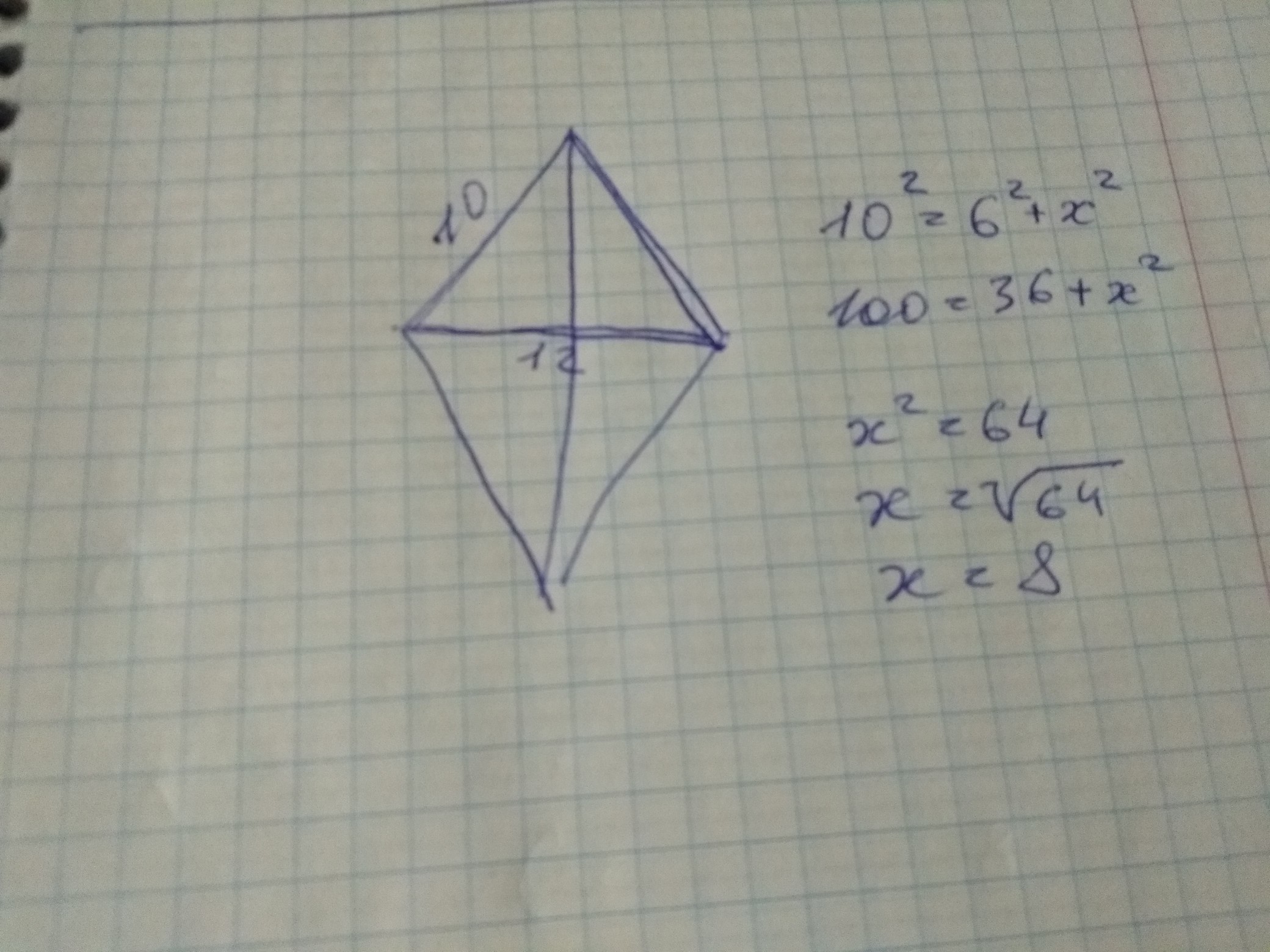 8см это половина диагонали. а значит вторым действием 8*2=16см. диагональ