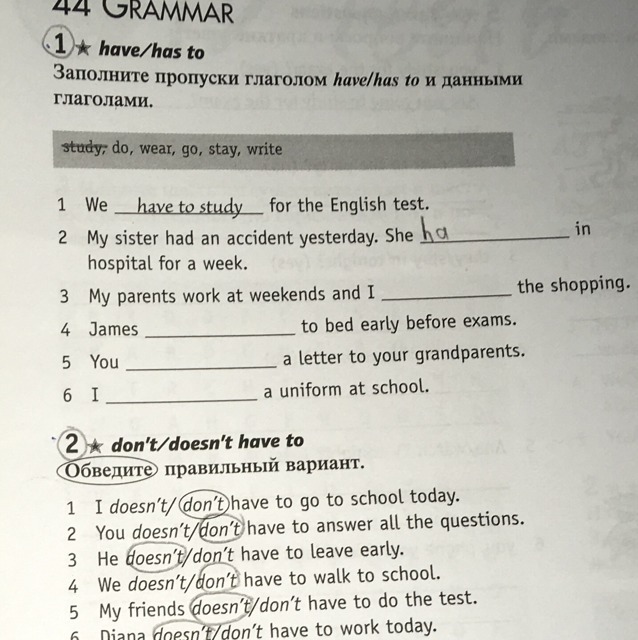 2. My sister had an accident yesterday. She has to stay in hospital for a week.