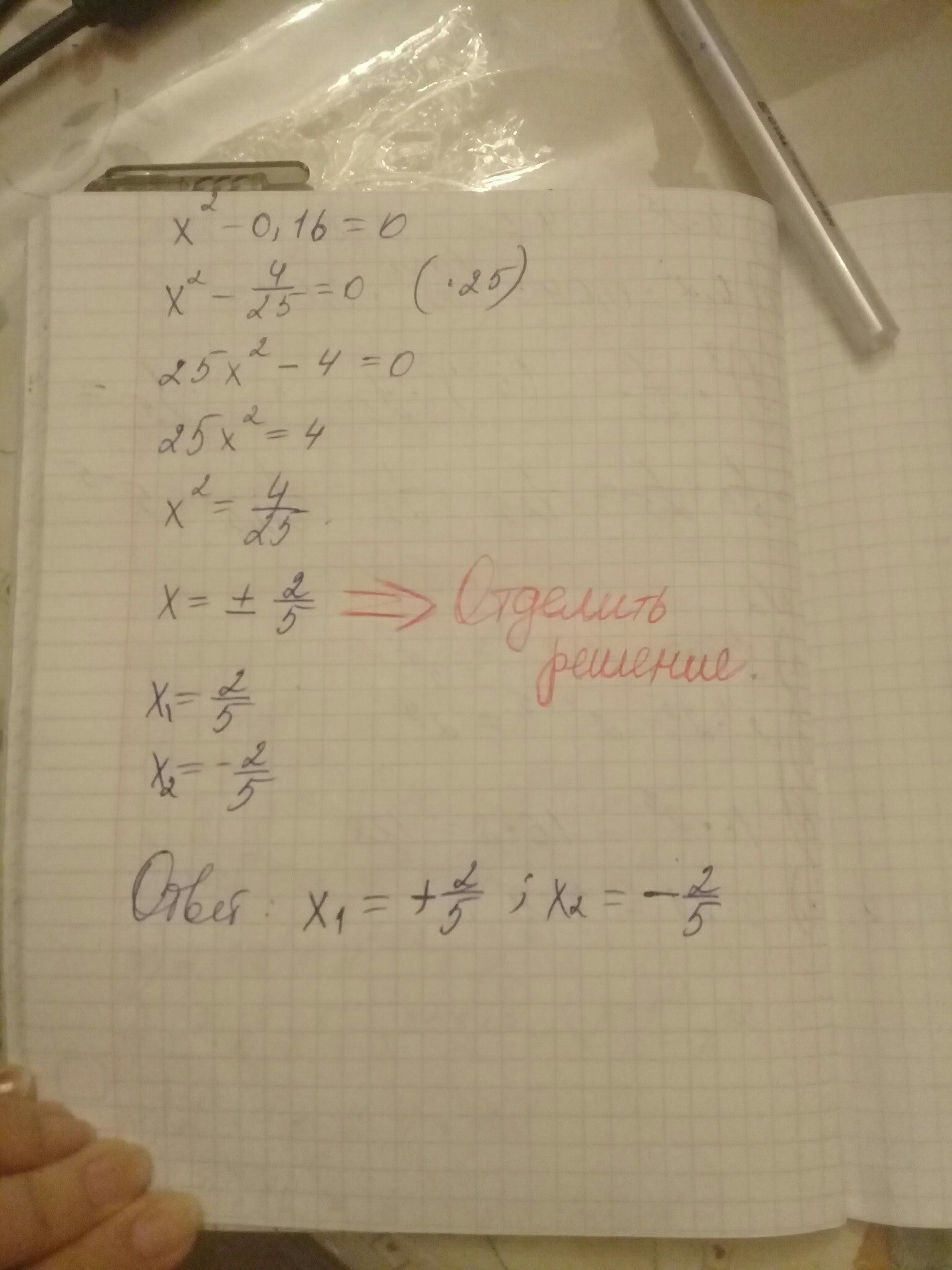 (x-0,4)(x+0,4)=0