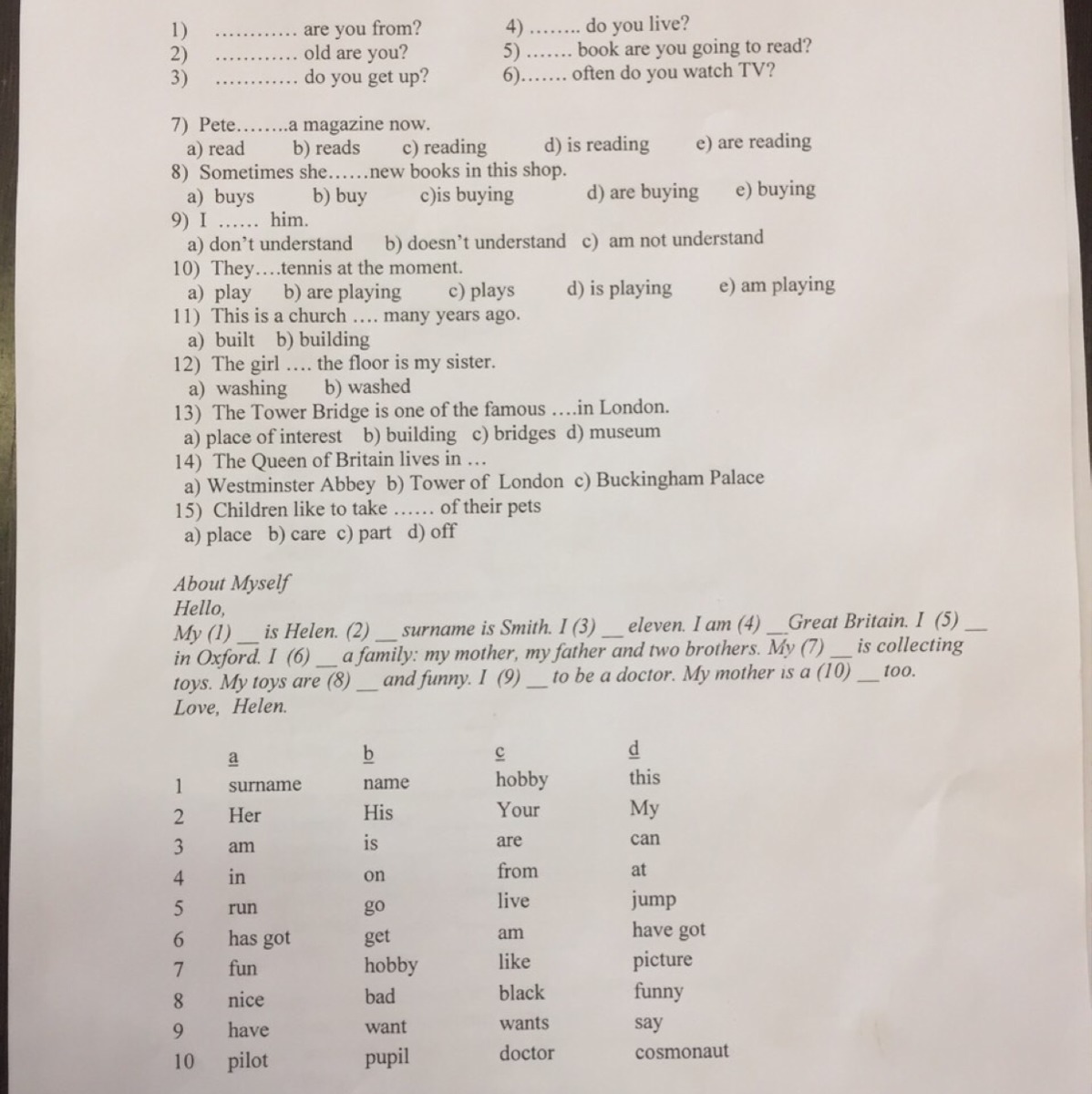 1 where 2 how 3 when 4 where 5 what 6 how 7 d 8 a 9 a 10 b 11 a 12 a 13 c 14 c 15 b