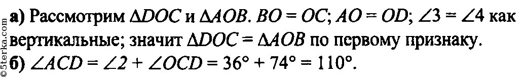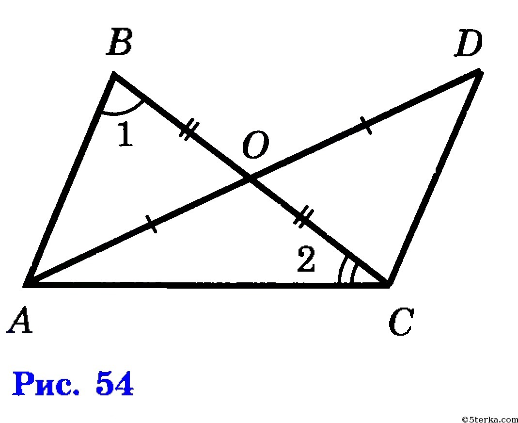 на рисунке 54 ОА равен AD AB равен AC угол 1 равен 74 градусов угол 2 равен 36 а Докажите что треугольники аод и BC равны B Найдите угол A CD