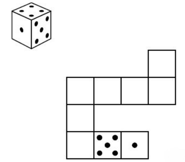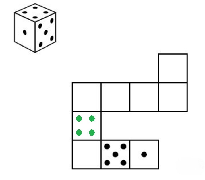 Игральный кубик прокатили по столу. На рисунке изображён след кубика. Отметьте на рисунке место, в котором грань с четырьмя точками соприкасается со столом.