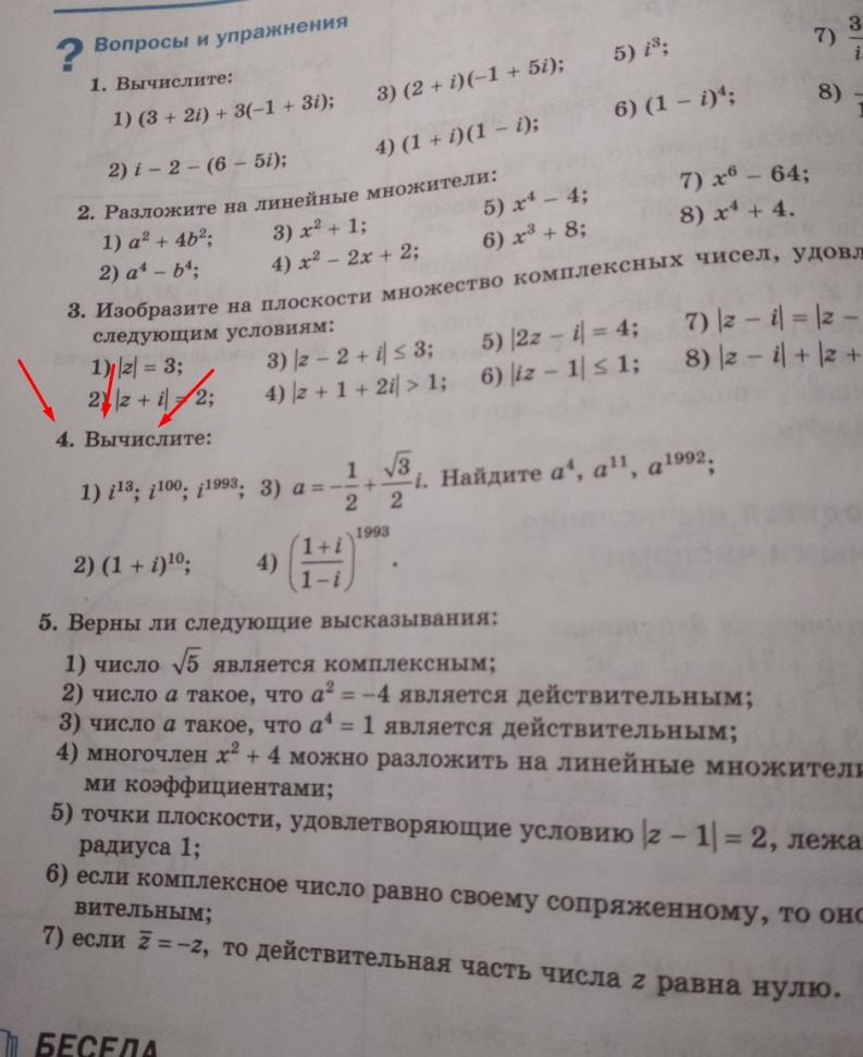 4)так и будет(1+i/1-i)=домножаем на 1-i =(1+i)*(1-i)=1+1=2