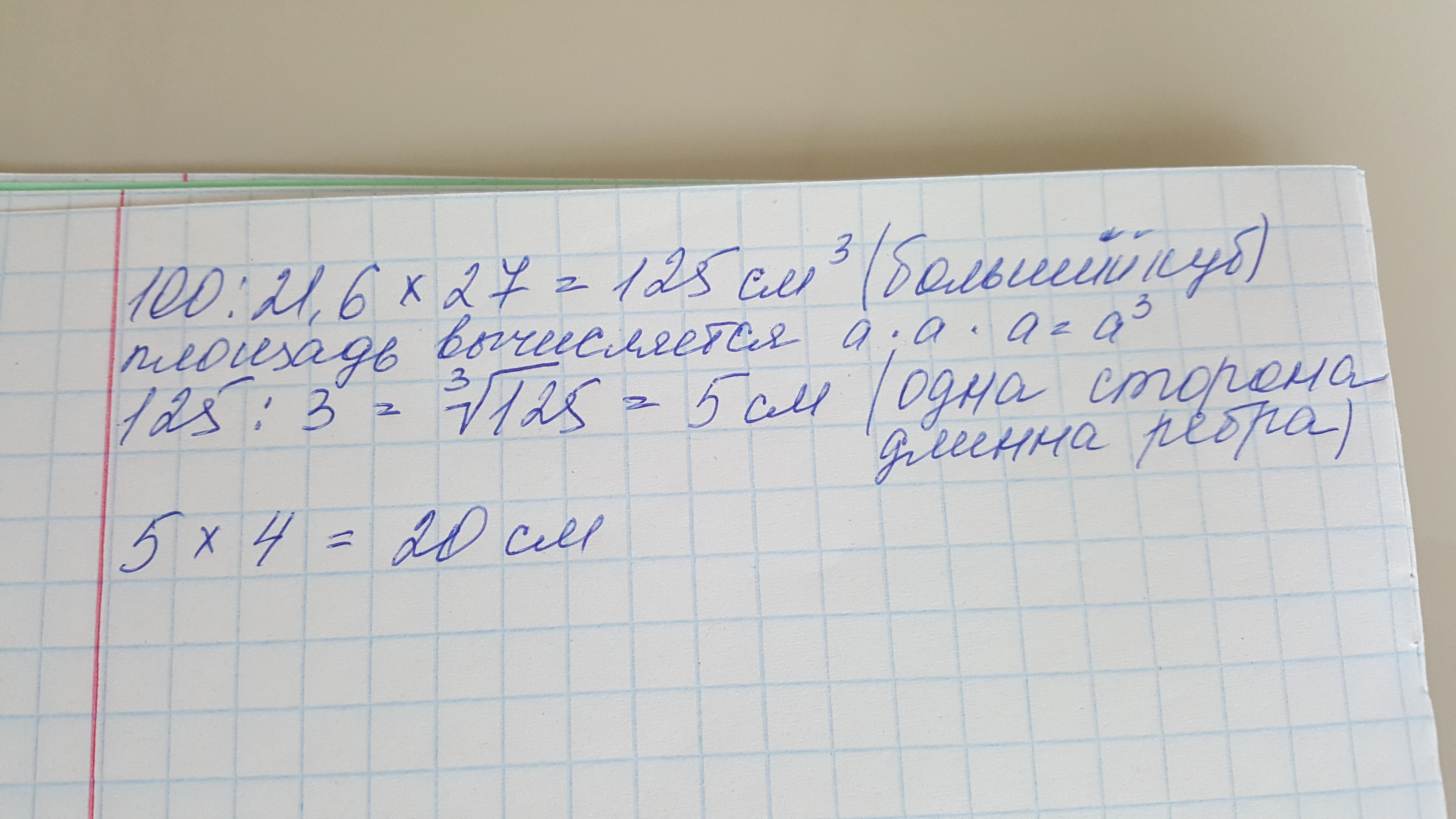 (27*100)÷21,6=125 см 5*5*5=125 см 5*4 20 см
