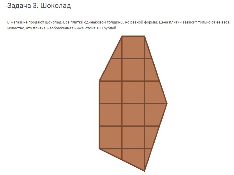 Если внимательно посмотреть на шоколадки,то можно заметить, что они состоят из одинаковых элементов, но в разных количествах. Одинаковые элементы отмечены в приложении одной цифрой.