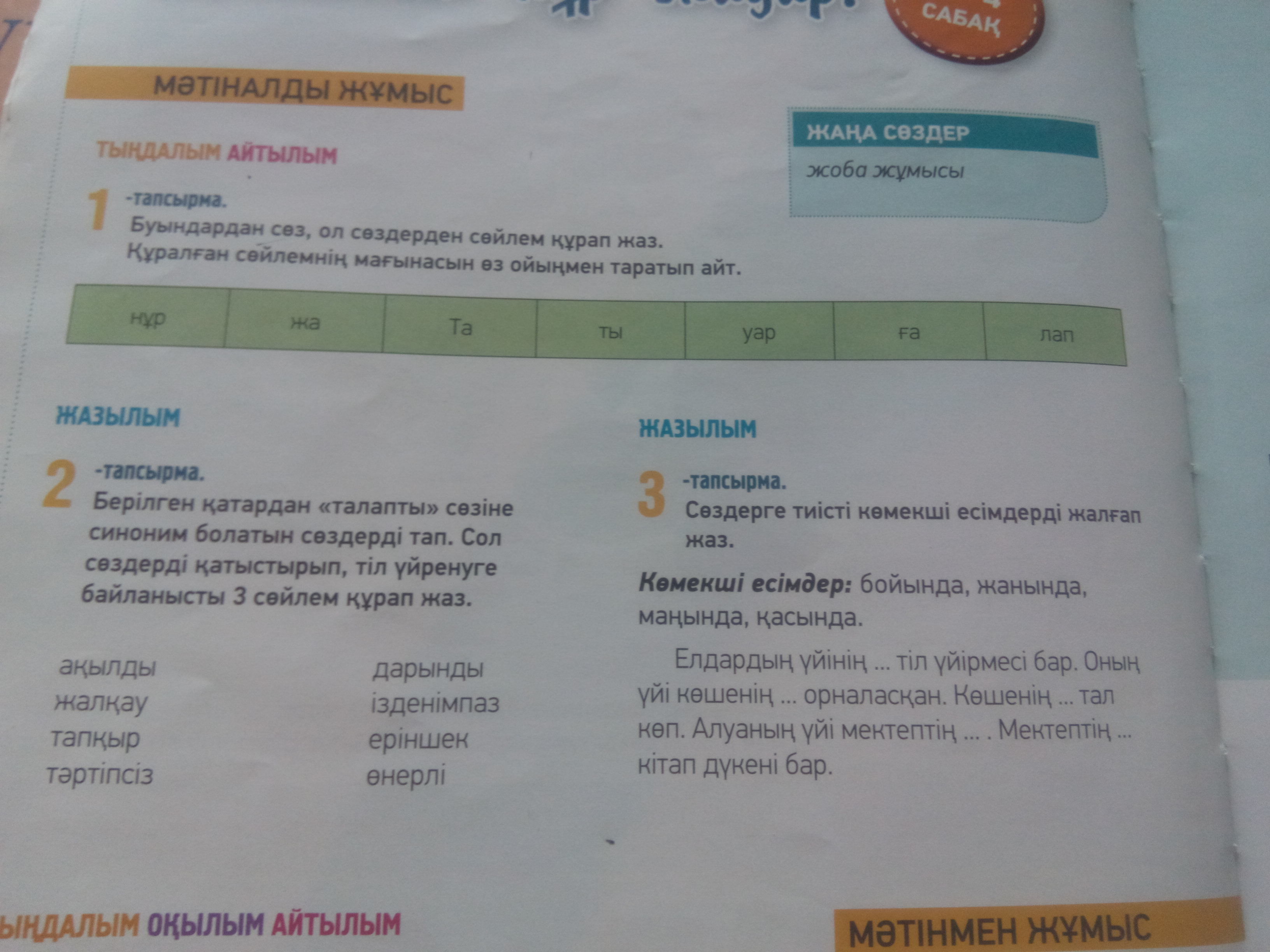 Елдардын уиинин жанында тил уйрмеси бар.Онын уйи кошенин бойында орналаскан.Кошенин манында тал коп.Алуанын уйи мектептин касында.Мектептин жанында Китап дукени бар