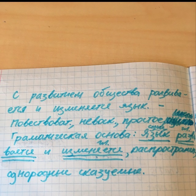 Синтактический разбор предложения :С развитием общества развивается и изменяется язык .