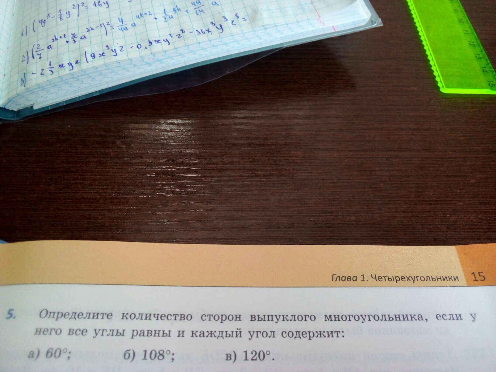 180•(n -2) = 108•n; 180n - 360 = 108n; 180n - 108n = 360; 72n = 360; n = 360:72; n = 5. Ответ: 5.