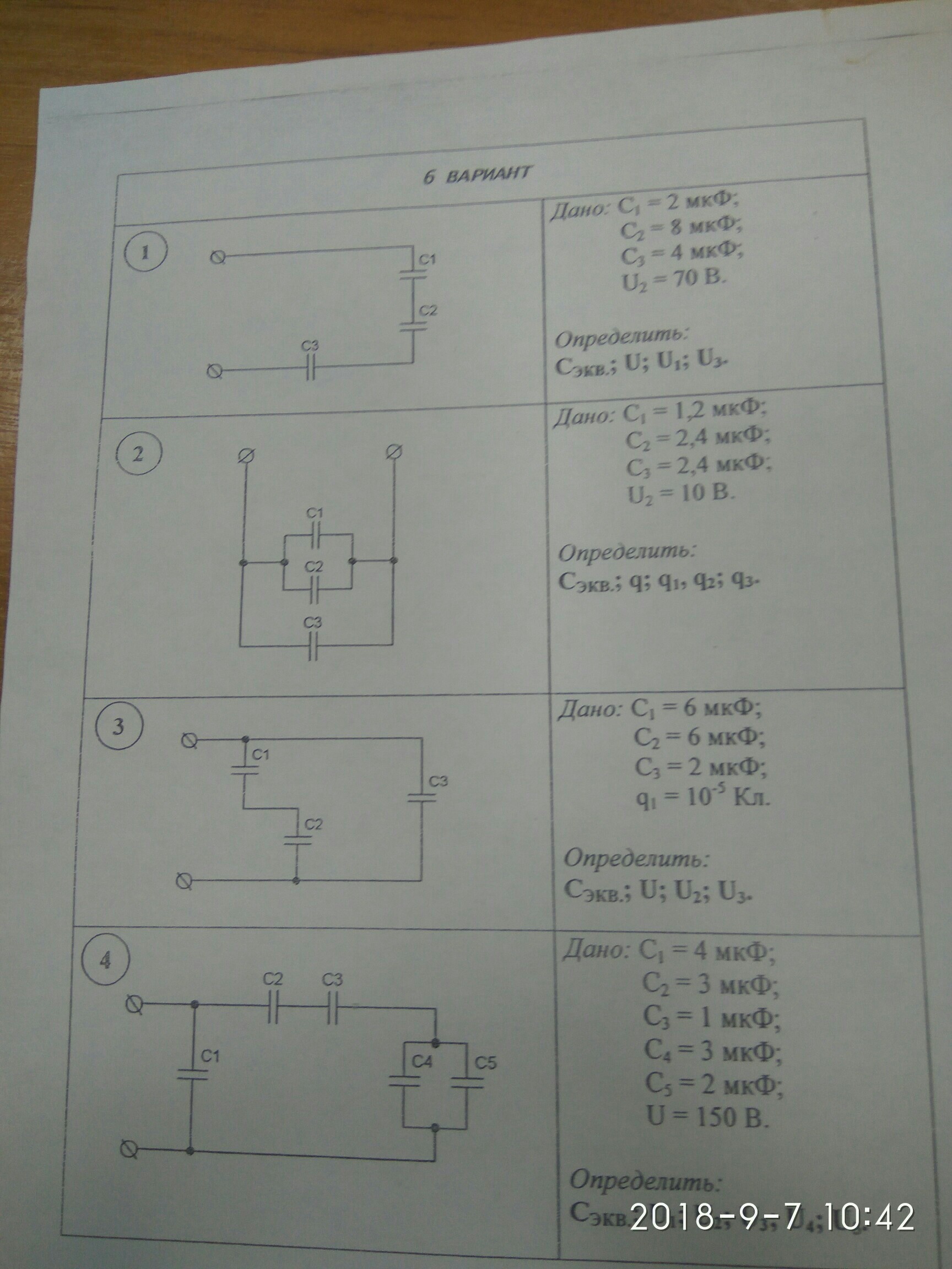 1) C12=C1*C2/(C1+C2)=2*8/(2+8)=1.6 мкФ (1,6*10^-6 Ф)