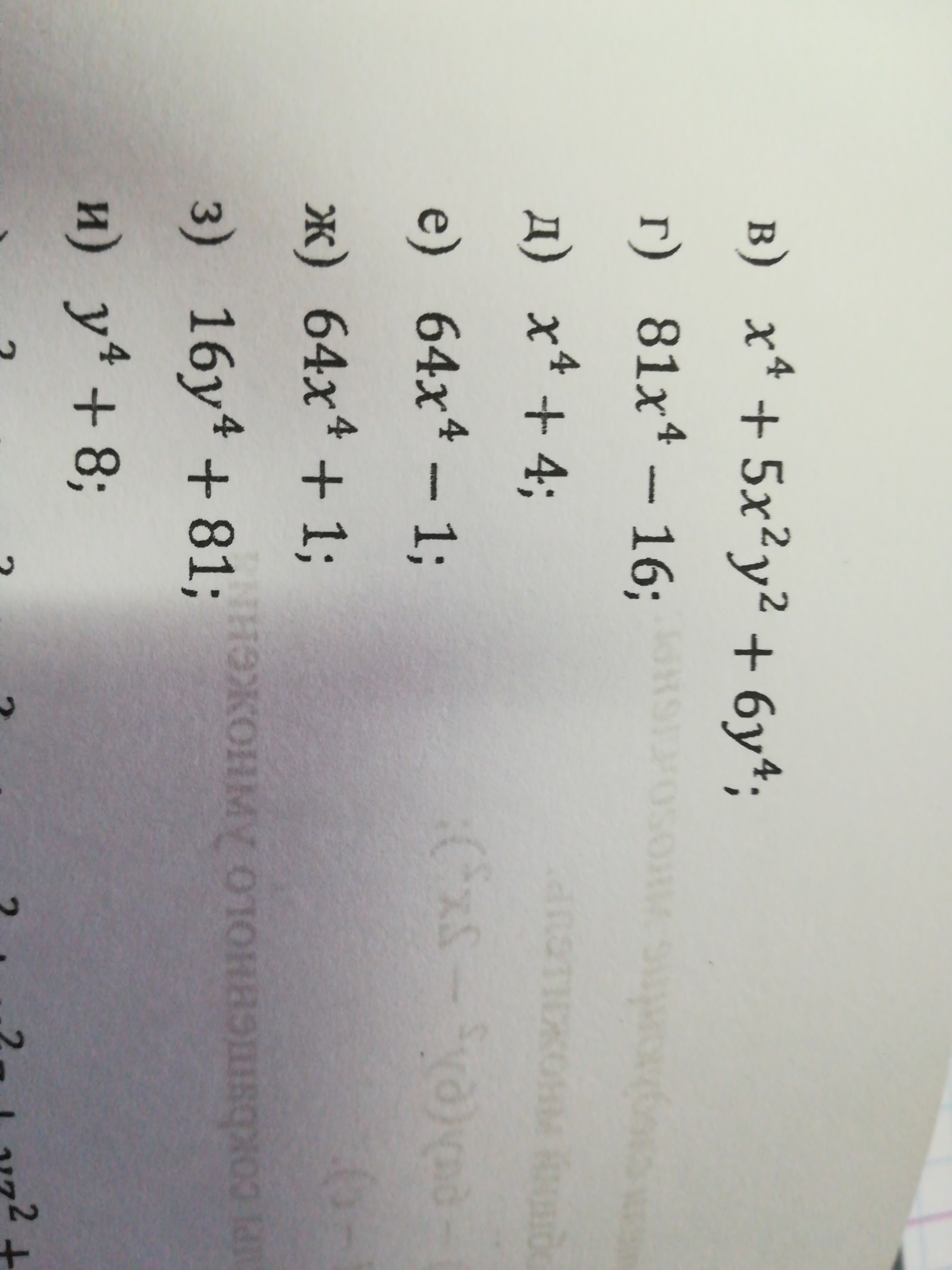 В примерах на фотографии нужно применить метод разложения отдельных членов на подобные слагаемые. Только под в), г), д), е), и). Заранее благодарен.