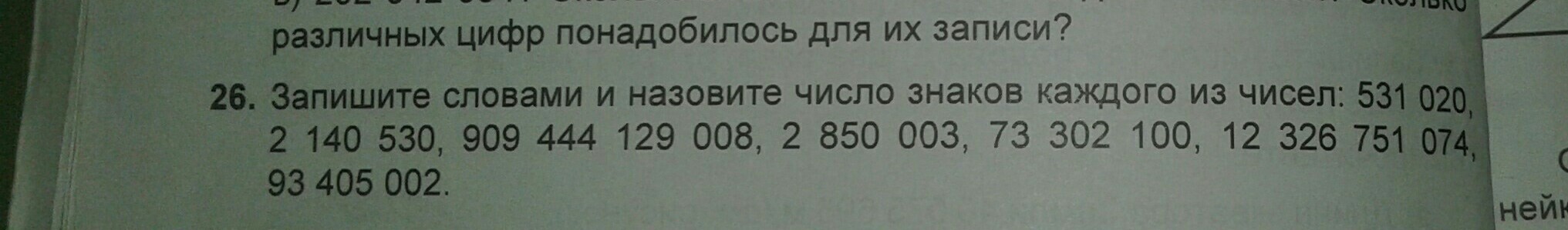 1- пятьсот тридцать одна тысяча двадцать (6 знаков), два миллиона сто сорок тысяч пятьсот тридцать (7), девятьсот девять миллиардов четыреста сорок четыре миллиона сто двадцать девять тысяч восемь( 12), два миллиона восемьсот пятьдесят тысяч три (7), семьдесят три миллиона триста две тысячи сто (8), двенадцать миллиардов триста двадцать шесть миллионов семьсот пятьдесят одна тысяча семьдесят четыре (11), девяносто три миллиона четырста пять тысяч два(8)