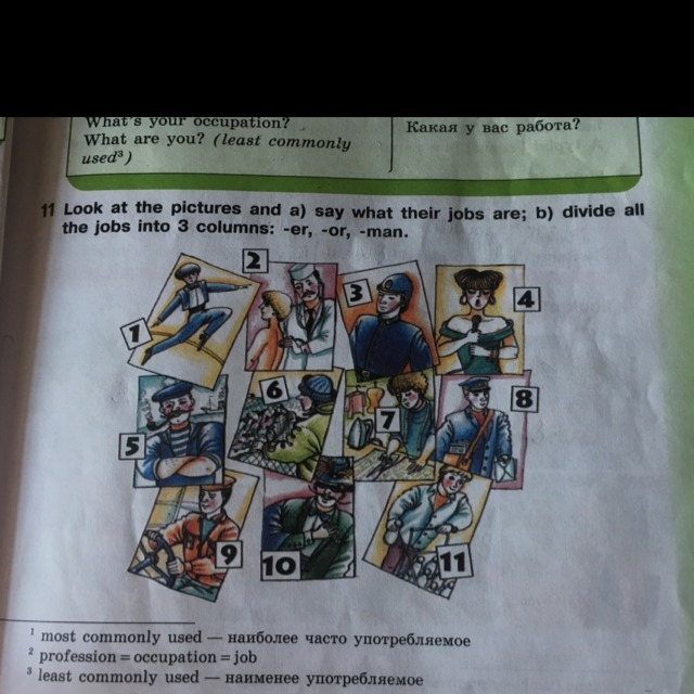 -or: doctor, sailor, tailor, actor -man: postman, milkman, fisherman, fireman - er: dancer, driver singer