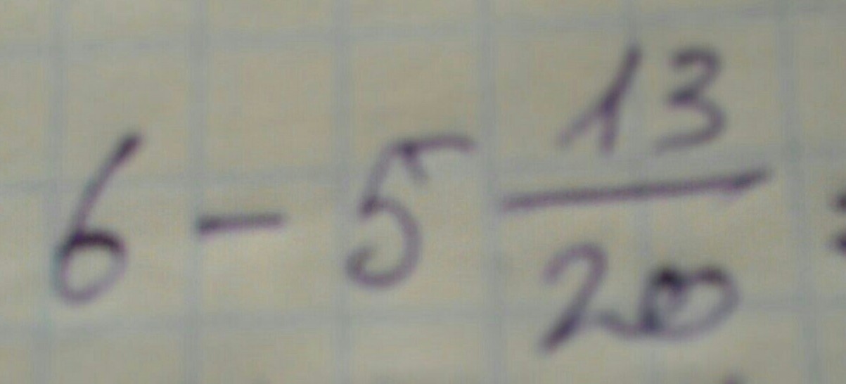 5 целых 20/20 (6)-5 целых 13/20=7/20 (не сокращается)=0,35 (на всякий случай)