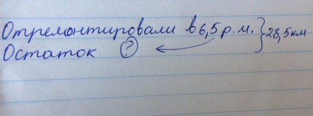 Дорогу длиной 28,5 км ремонтируют. Отремонтировали в 6,5 раз меньше, чем осталось. Сколько км дороги осталось неотремонтированной?