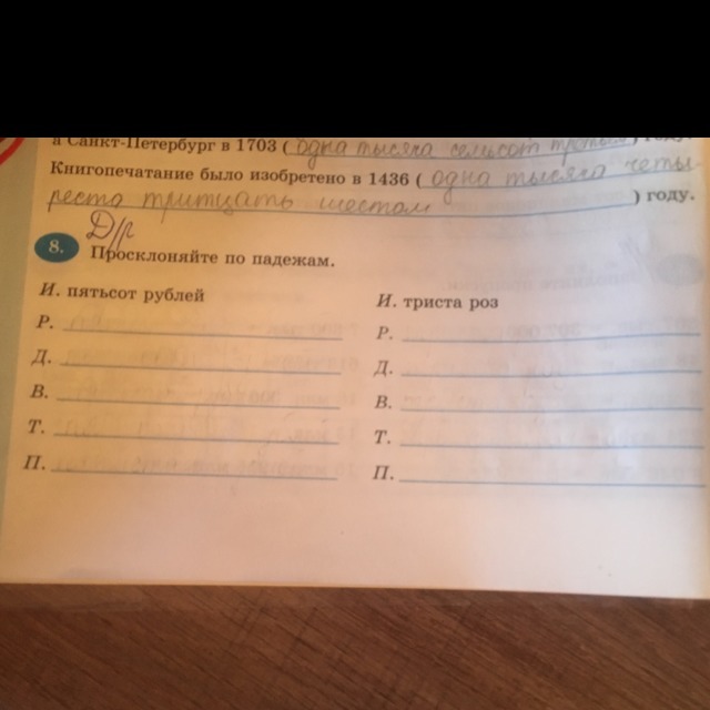 1. Родительный нет чего? пятисот рублей Дательный рад чему? пятистам рублям Винительный вижу что? пятьсот рублей Творительный оплачу чем? пятьюстами рублями Предложный думаю о чём? о пятистах рублях