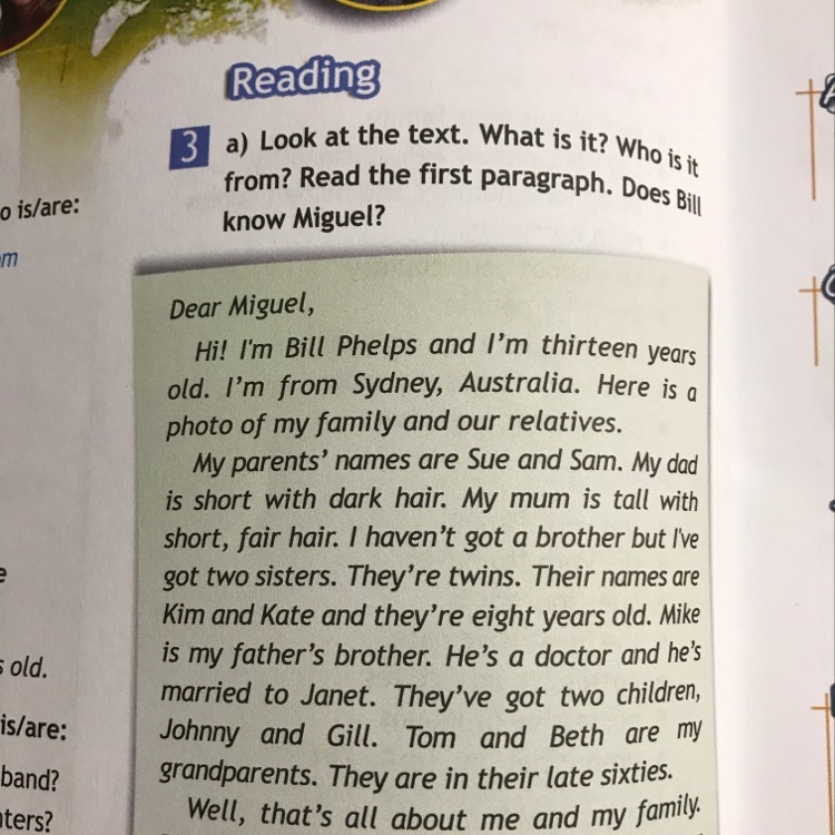 His name - Bill Phelps, and he is 13 years old. He is from Sydney, Australia. In the taxt, there are no Miguel:(
