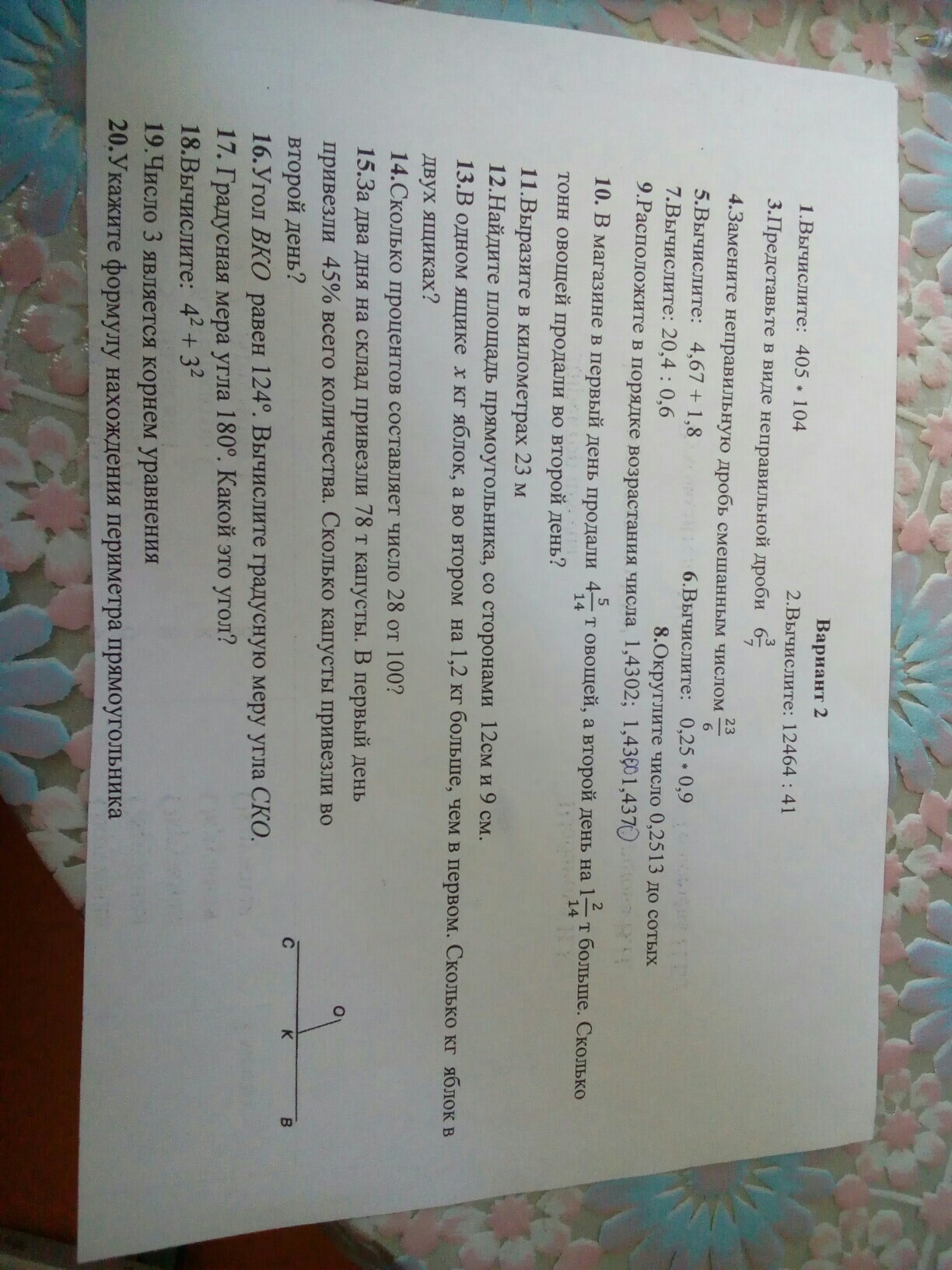 1) 405*104=40500+1620=42120 2) 12464:41=304 3) 6 3/7=45/7 4) 23/6=3 5/6 5) 4,67+1,8=6,47
