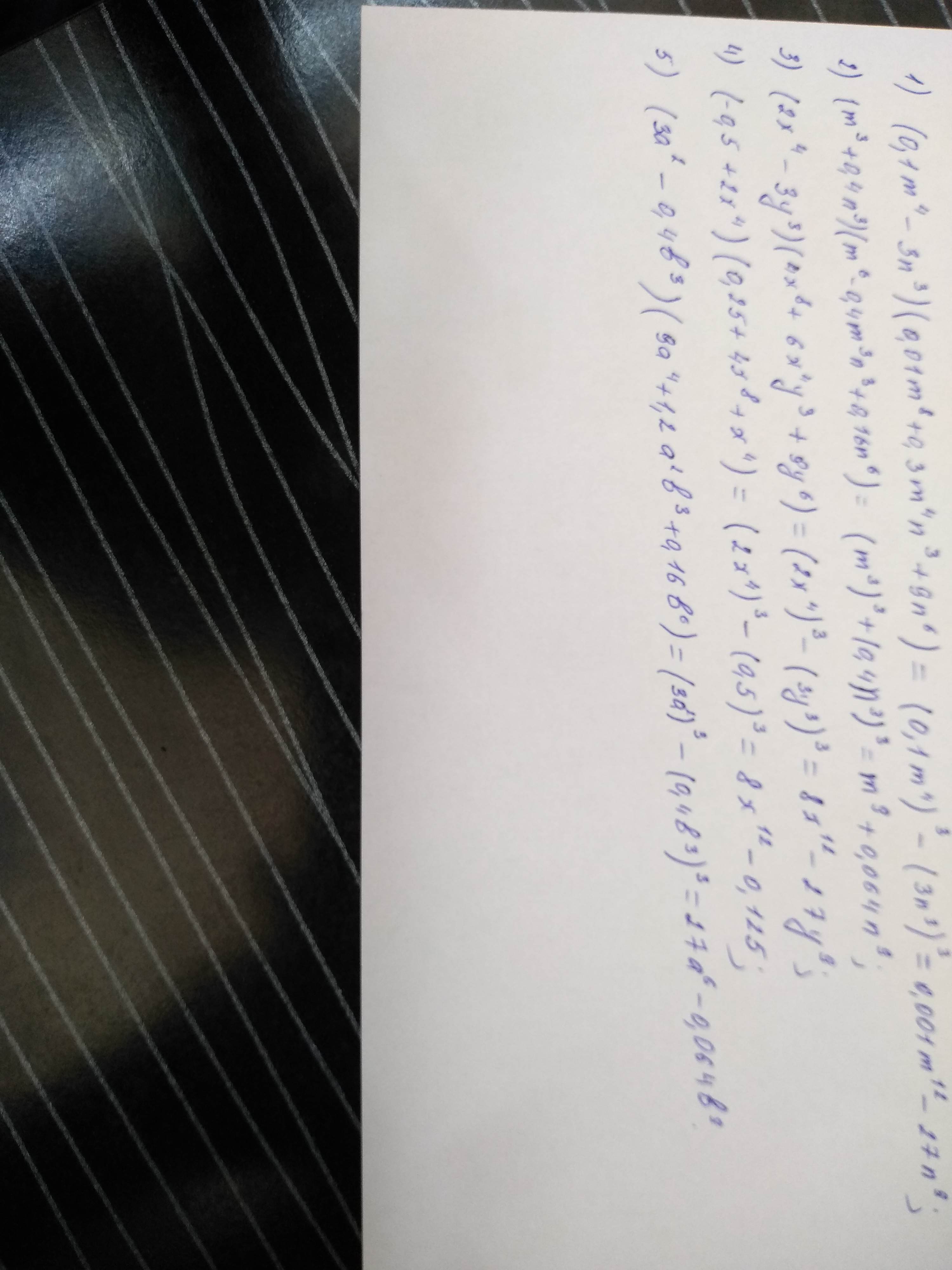 1) (0,1m^4−3n^3)(0,01m^8+0,3m^4n^3+9n^6)
