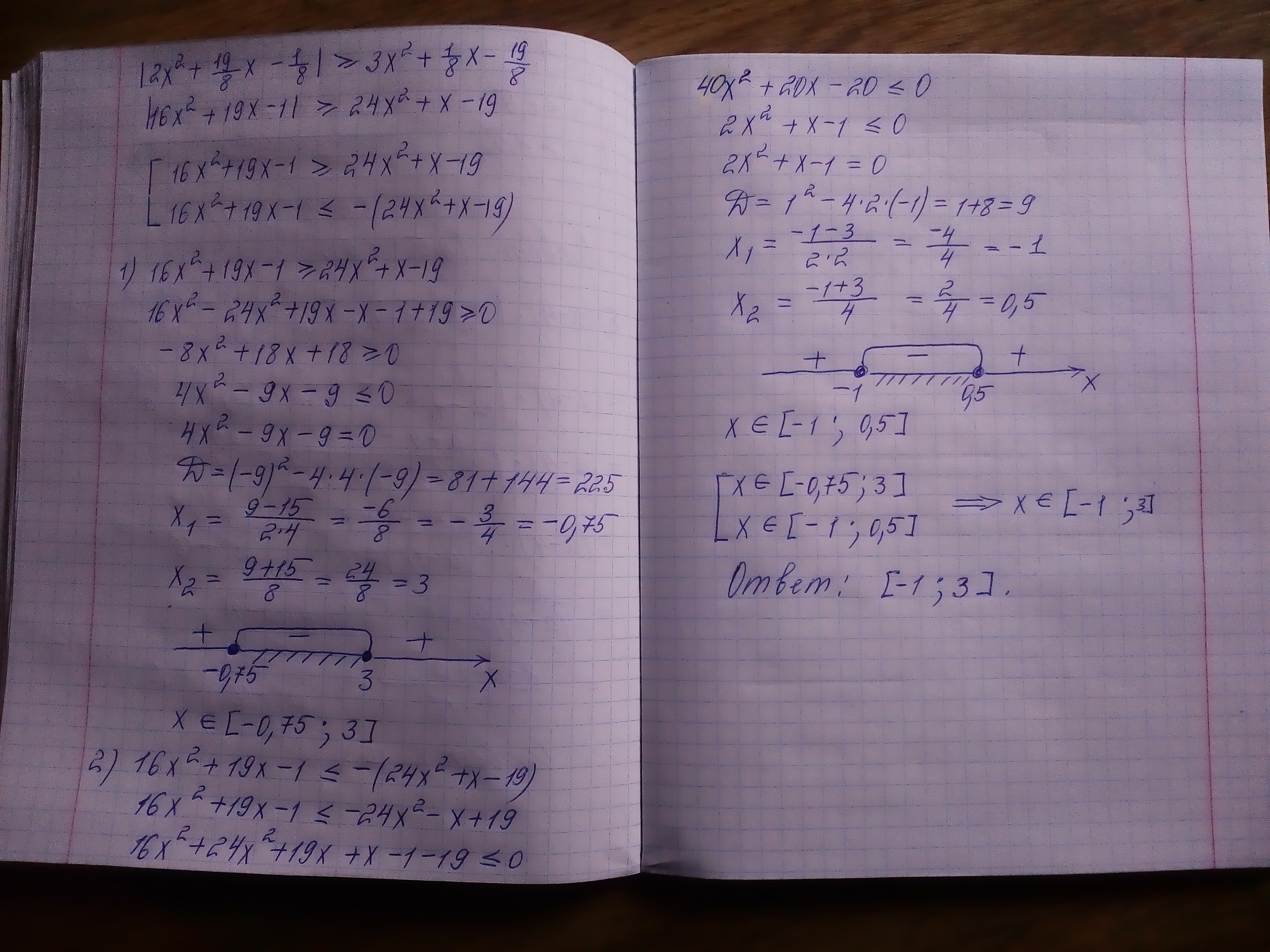 16x^2+19x-1>=24x^2+x-19; 16x^2+19x-1<=-24x^2-x+19