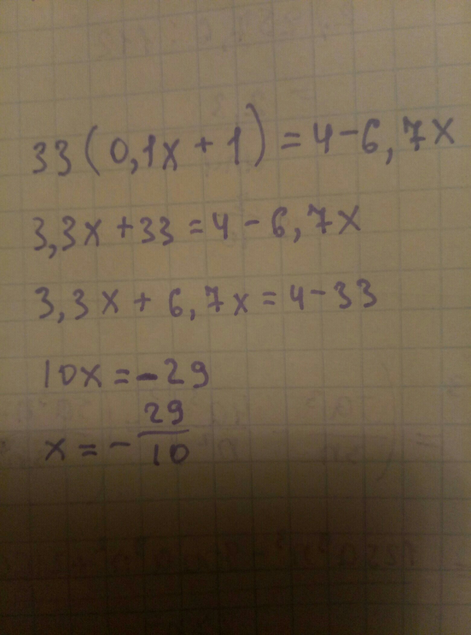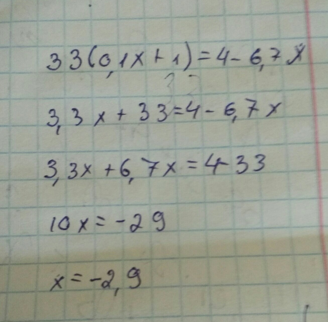 33(0,1х+1)=4-6,7х, нужно что-то писать)