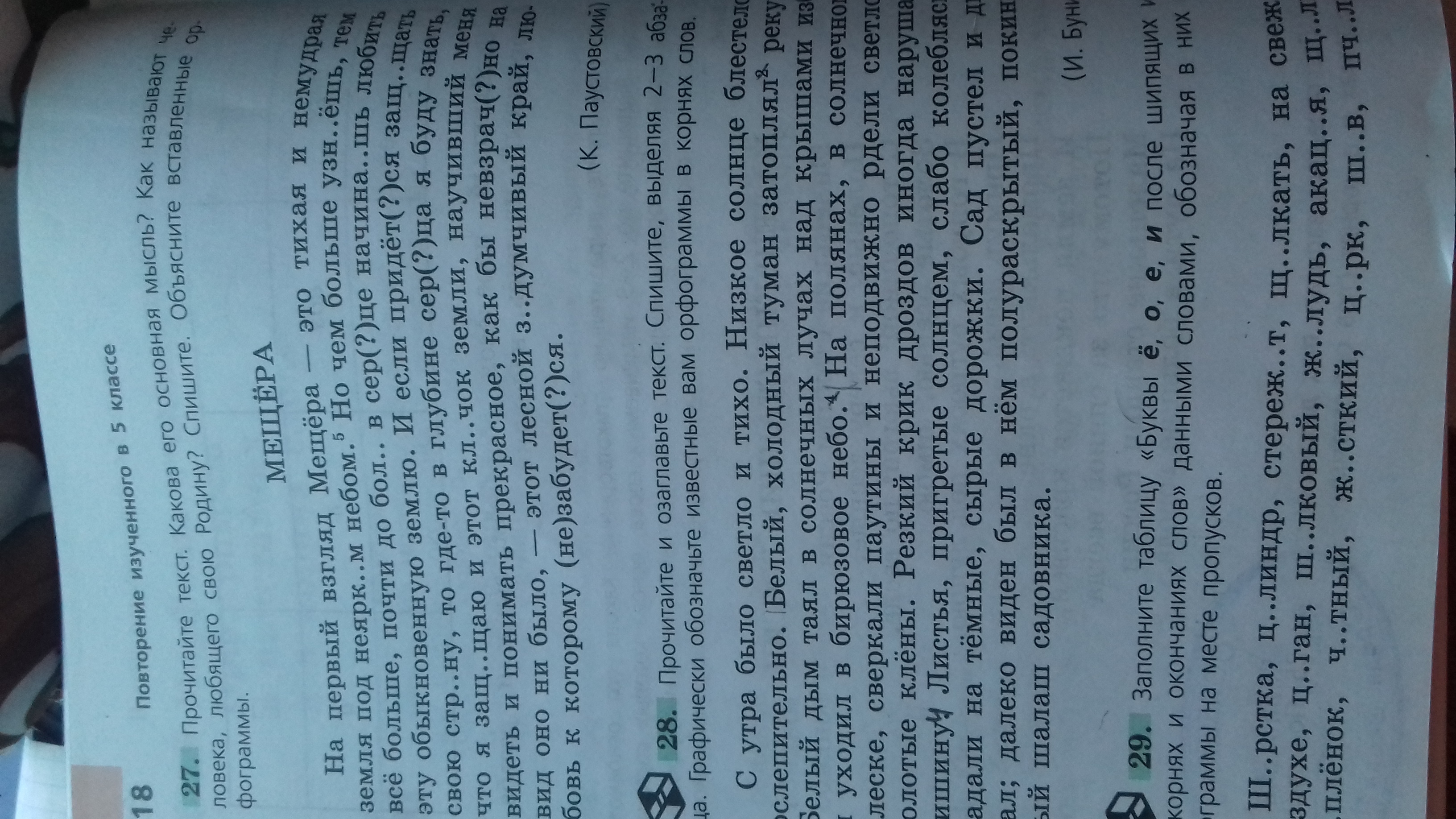 Помогите пожалуйста!Прочитайте текст.Каков его основная мысль?Как называется человек, любящей свою родину.Объясните вставлены орфограммы. Упражнение 27.Заранее спасибо.