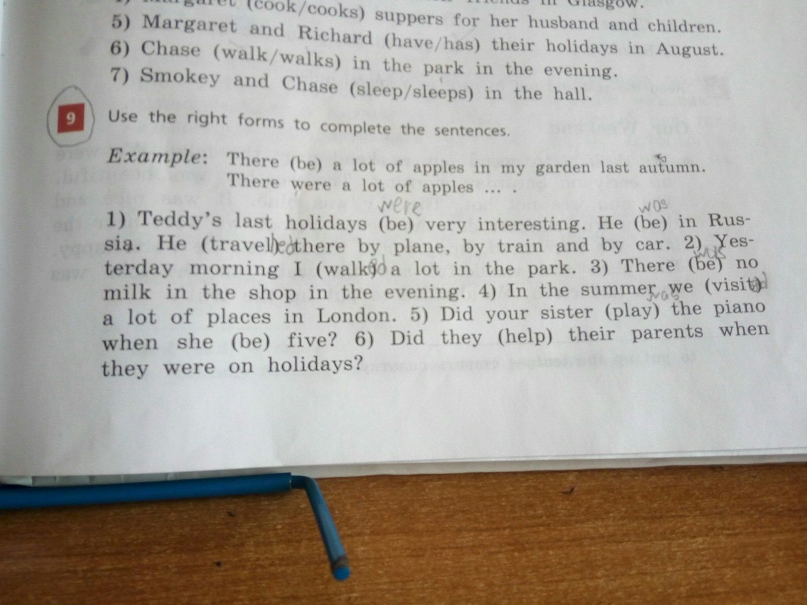 1. were, was, travelled