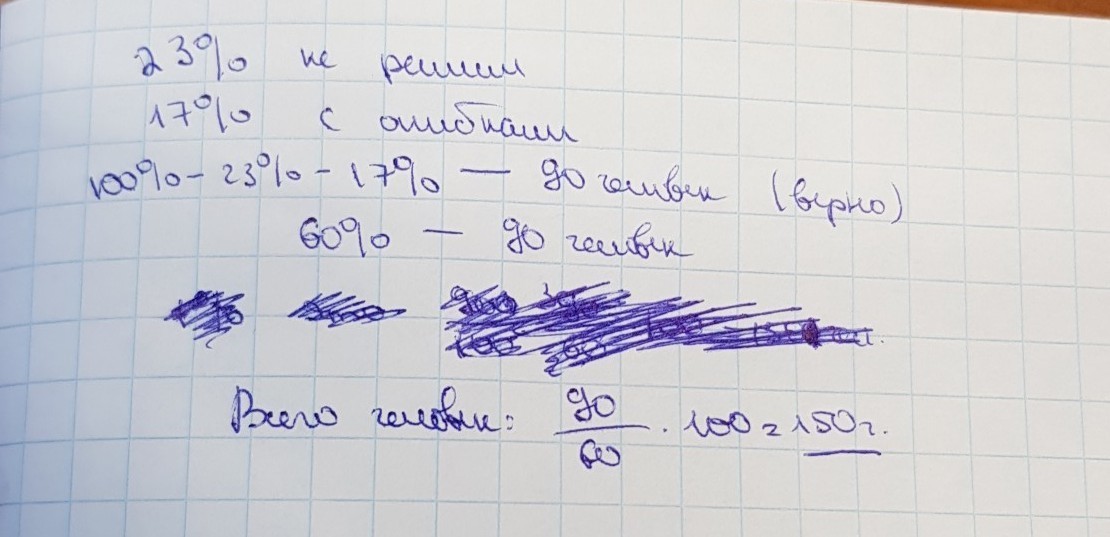 При выполнении письменной работы по математике 23 % абитуриентов не решили ни одной задачи, 17 % абитуриентов допустили в решении задач ошибки. Оставшиеся 90 человек решили все задачи верно. Сколько абитуриентов выполняло эту работу?