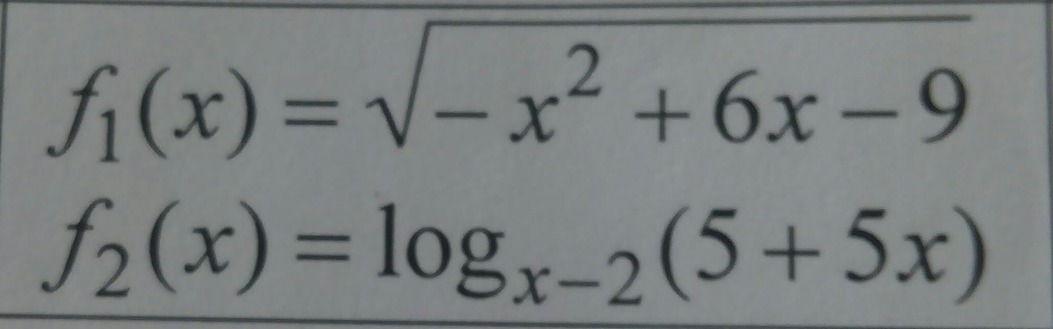 1) Область определения первой функции совпадает с множеством решений неравенства -x² + 6x - 9 ≥ 0| · (-1); x² - 6x + 9 ≤ 0; (x - 3)² ≤ 0; это неравенство равносильно уравнению (x - 3)² = 0; х = 3. Ответ, D(f₁) = {3}.