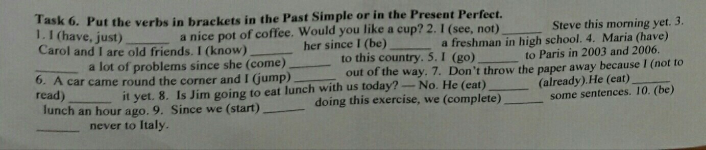 Since we started doing this exercise, we have completed some sentences.