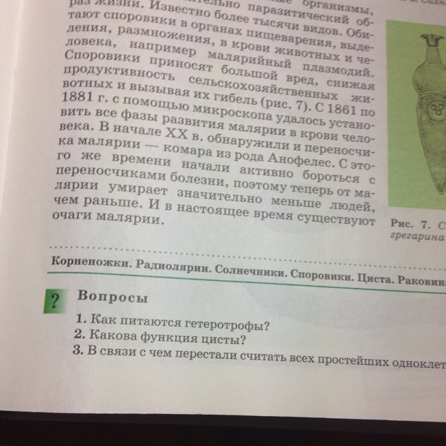 1) Гетеотропы питаются готовыми органическими веществами других организмов. 2) Циста размножается и питается летом. При наступлении холода осенью, циста перестает питаться и её тело становиться круглым.При наступлении благоприятных условий амеба покидает оболочку цисты. Выпускает ложноножки и начанает питаться и размножаться. 3) Их перестали считать одноклеточными ,потому что в настоящее время к ним относят не только огранизмы,состоящие из одной клнтки,но и образованные несколькими сходными по строению кдетками-колониальные формы.