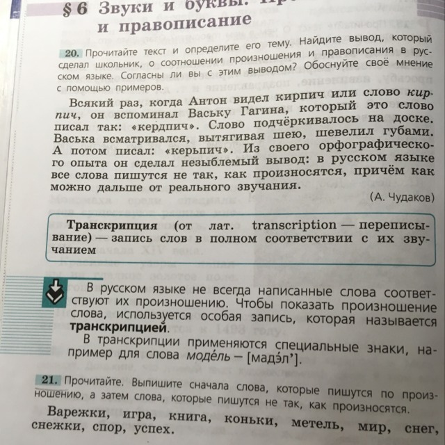 5 примеров где написано соответствует произношениям и не соответствует (пример 21 упр)