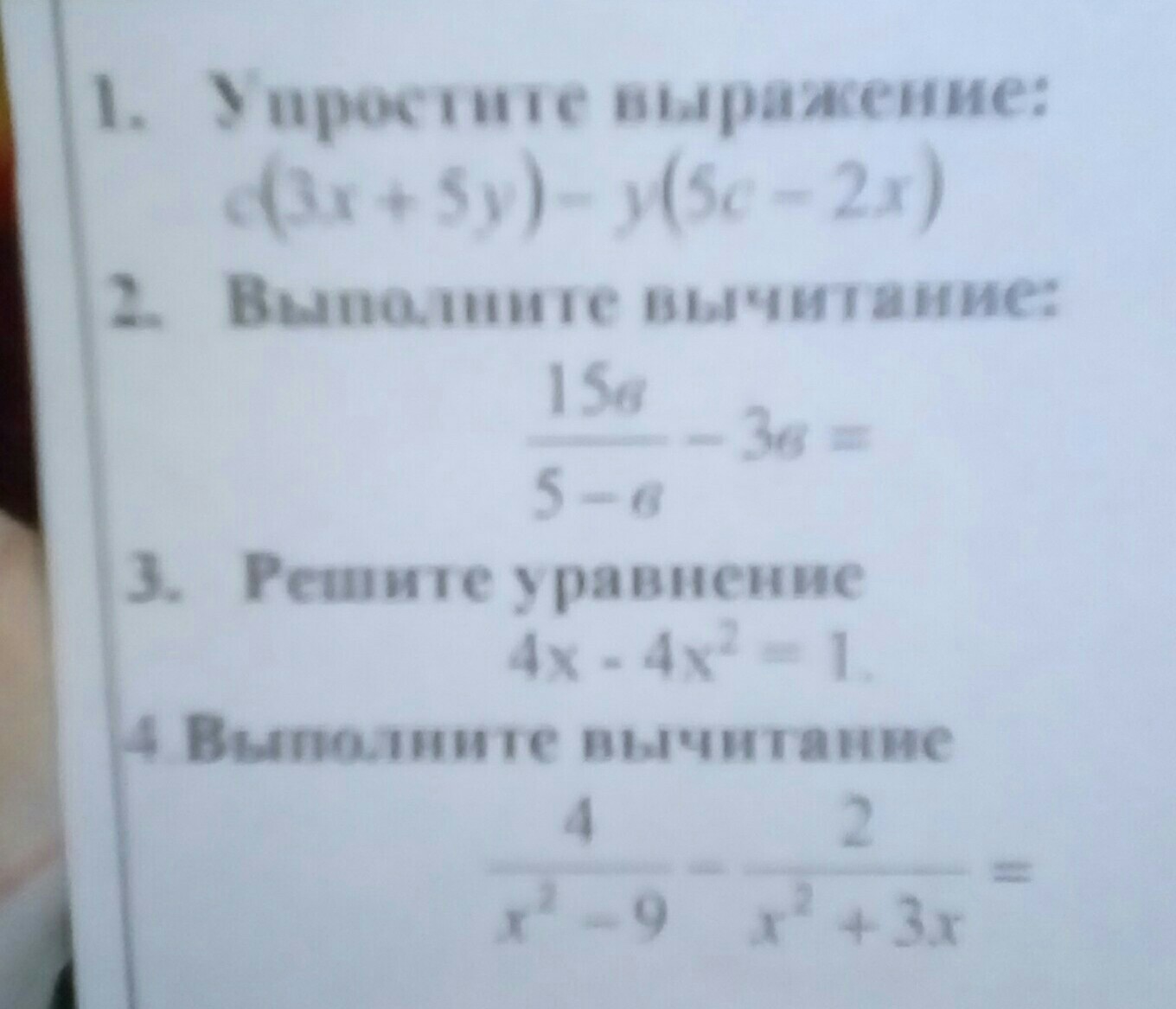 1) с(3х+5у)- у (5с- 2х)= =3сх+5ус-5ус+2ху=