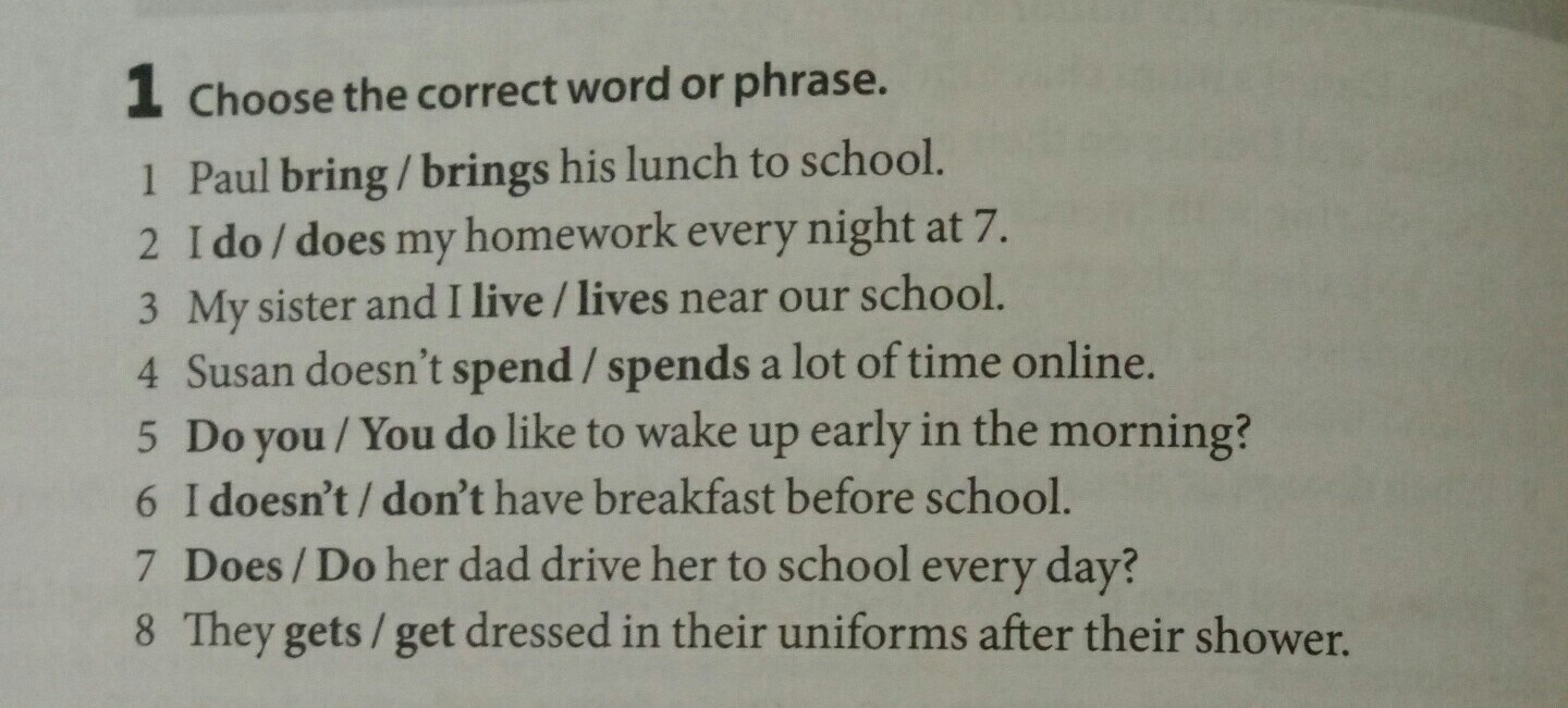 2) I do my homework every night at 7.