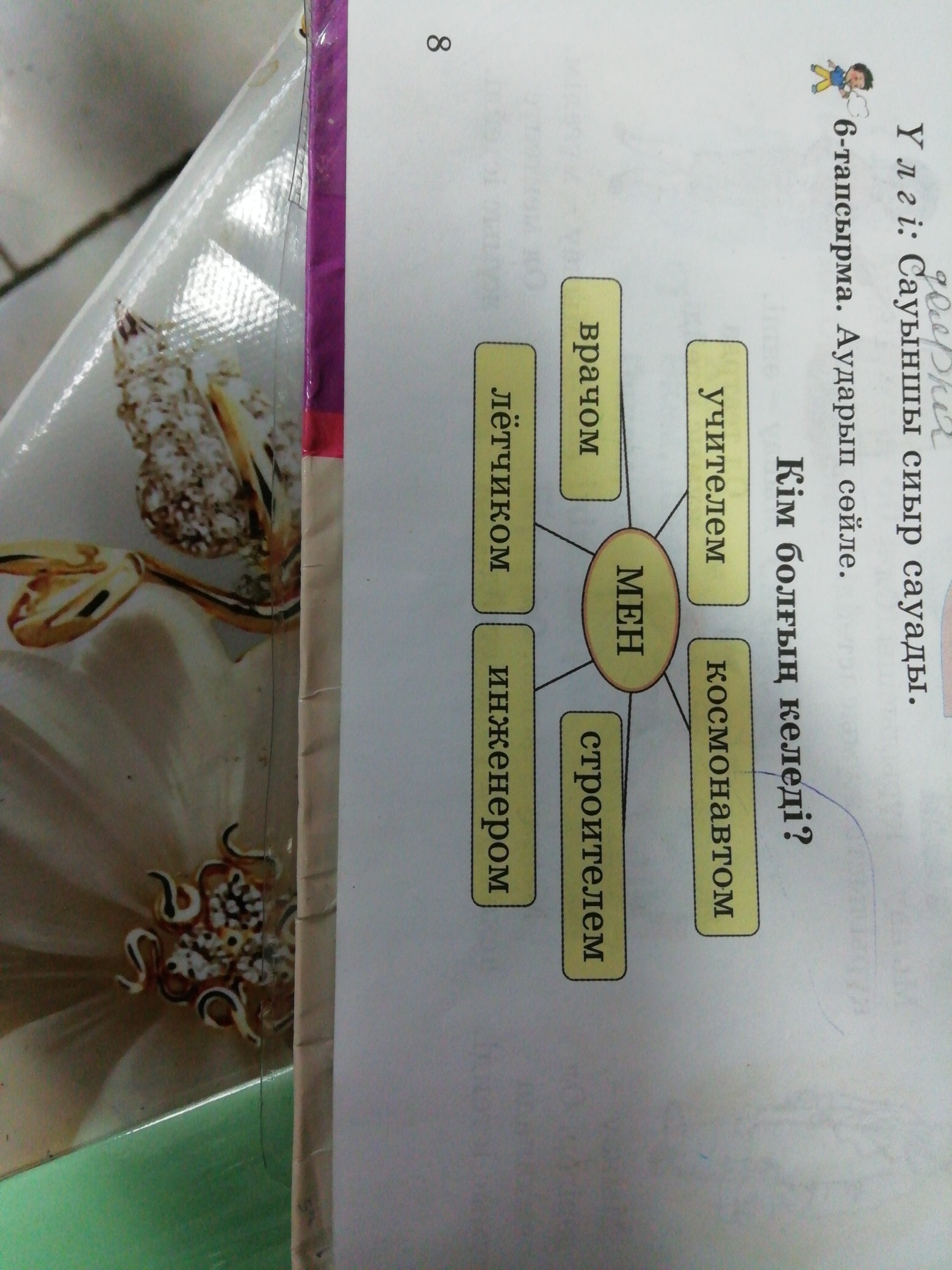 Мен мұғалім болғым келеді.Мен ғарышкер болғым келеді.Мен құрылысшы болғым келеді.Мен инженер атанғым келеді.Мен ұшқыш атанғым келеді.Мен дәрігер атанғым келеді.