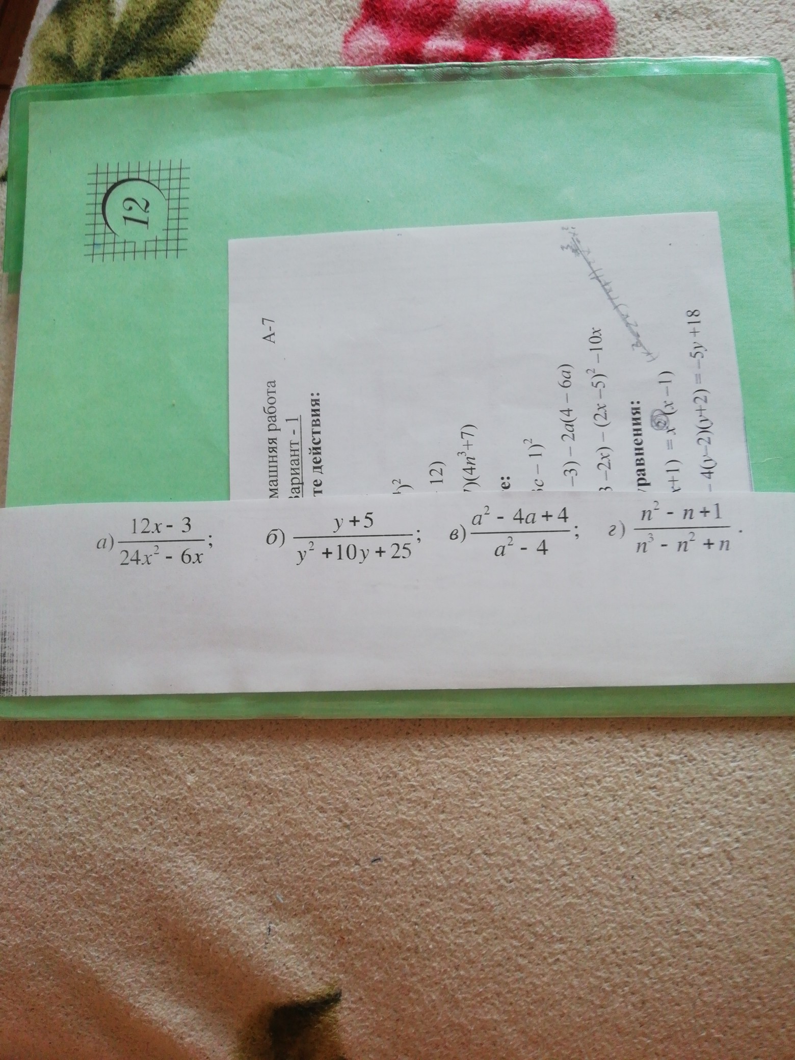 / это типо дробная черта ок! 12х^2-3/24х^2 -6х = 3(4х-1) / 6х(4х-1) = 3(4х-1)/6х(4х-1) = 3•1 / 6х = 1 / 2х
