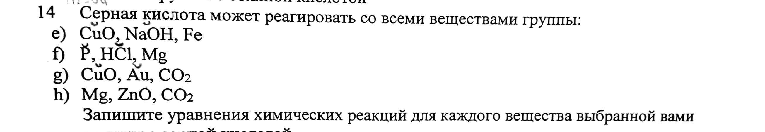 Основный оксид, щёлочь и металл до водорода - то, с чем реагируют кислоты, в том числе и серная