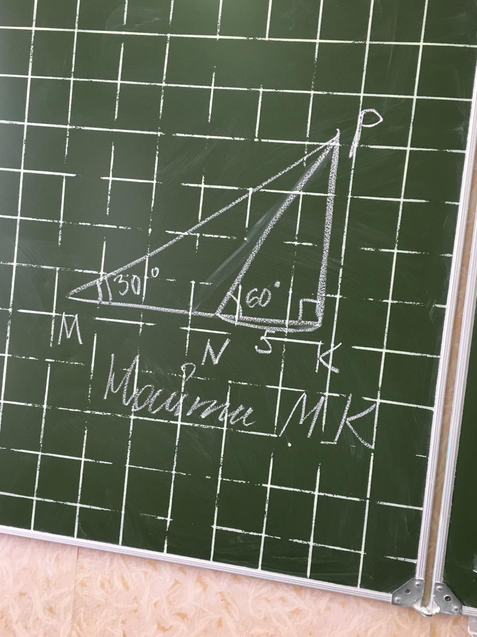 угол K = 90°, угол M = 30°, PK = 5*sqrt(3)