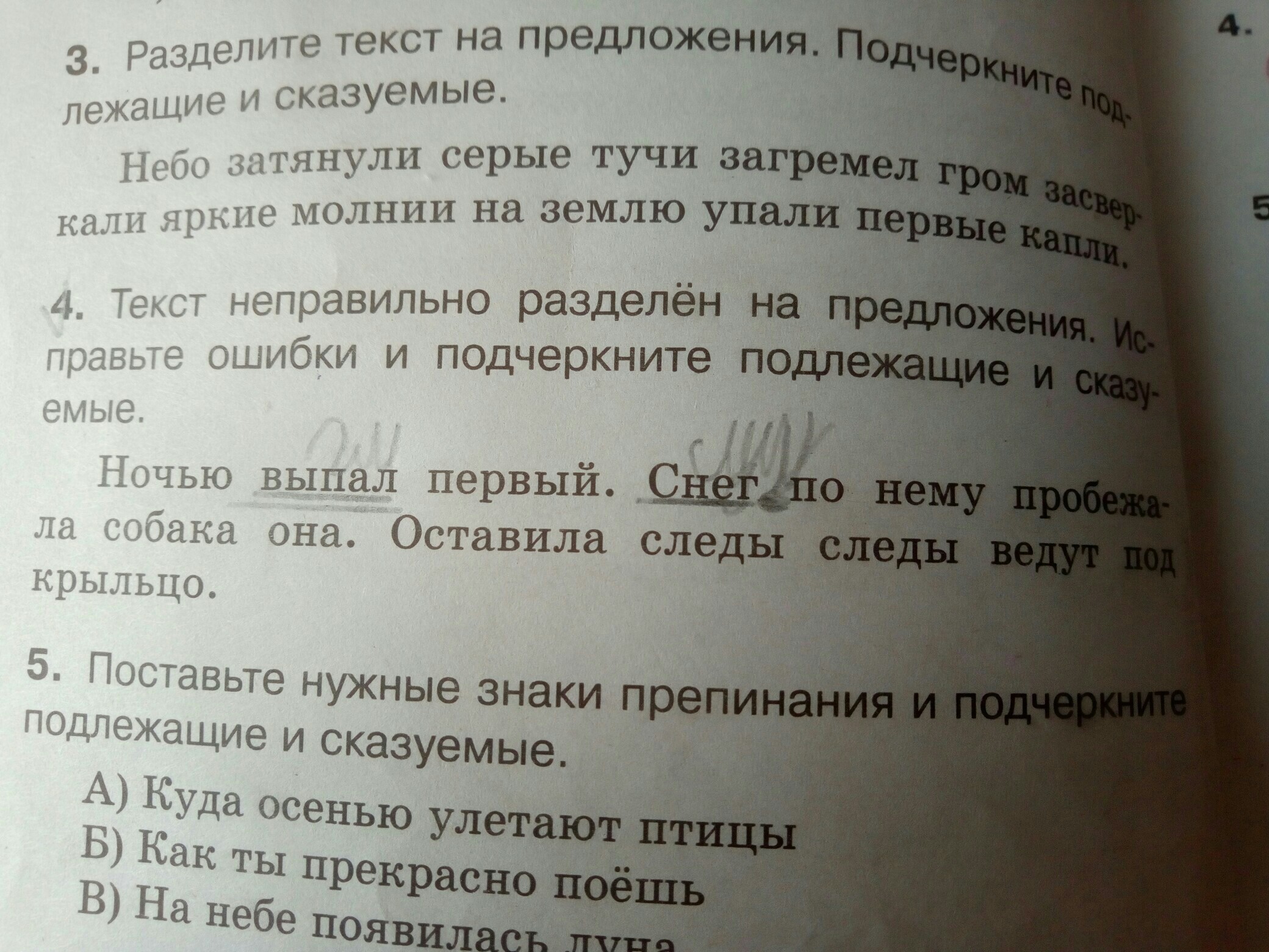 Ночью выпал первый снег. По нему пробежала собака. Она оставила следы. Следы ведут под крыльцо.