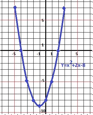 постройте график функции y=x2+2x-8. 1. промежуток роста функций 2.при каких значениях Х набувае отличительных значений