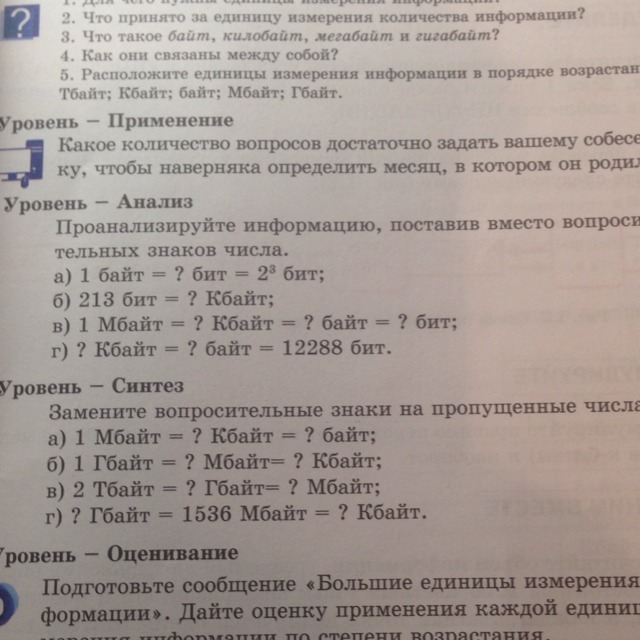 г) 1.5 ГБ = 1536 МБ = 1572864 Кбайт