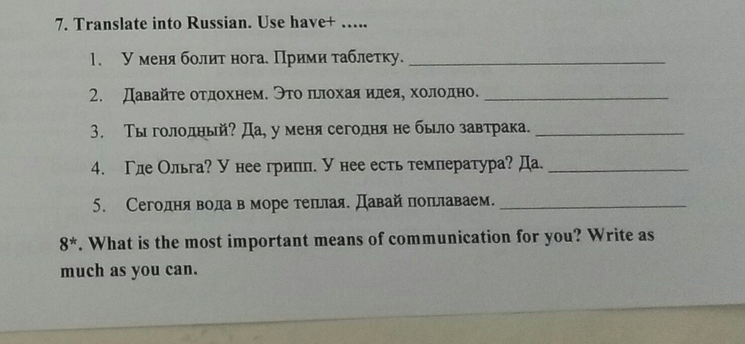 4. Where is Olga? She has the flu. She's got temperature? Yes