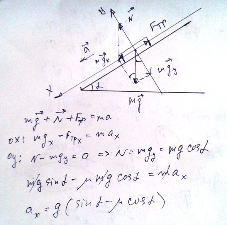 Тело массой m движется по наклонной плоскости с ускорением .Угол наклона плоскости к горизонту равен Альфа.Определите ускорение тела относительно наклонной плоскости если коэффицент трения равен k? СРОЧНООО