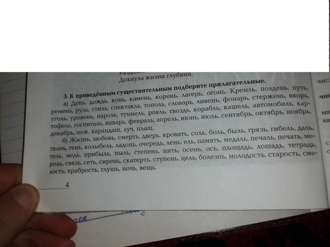 Солнечный день, туманный дождь,крепкий конь,твёрдый камень, длинный корень, школьный лагерь,жаркий огонь.