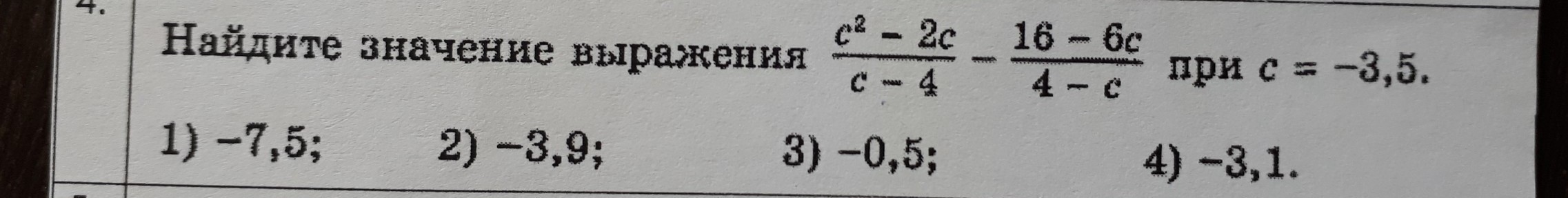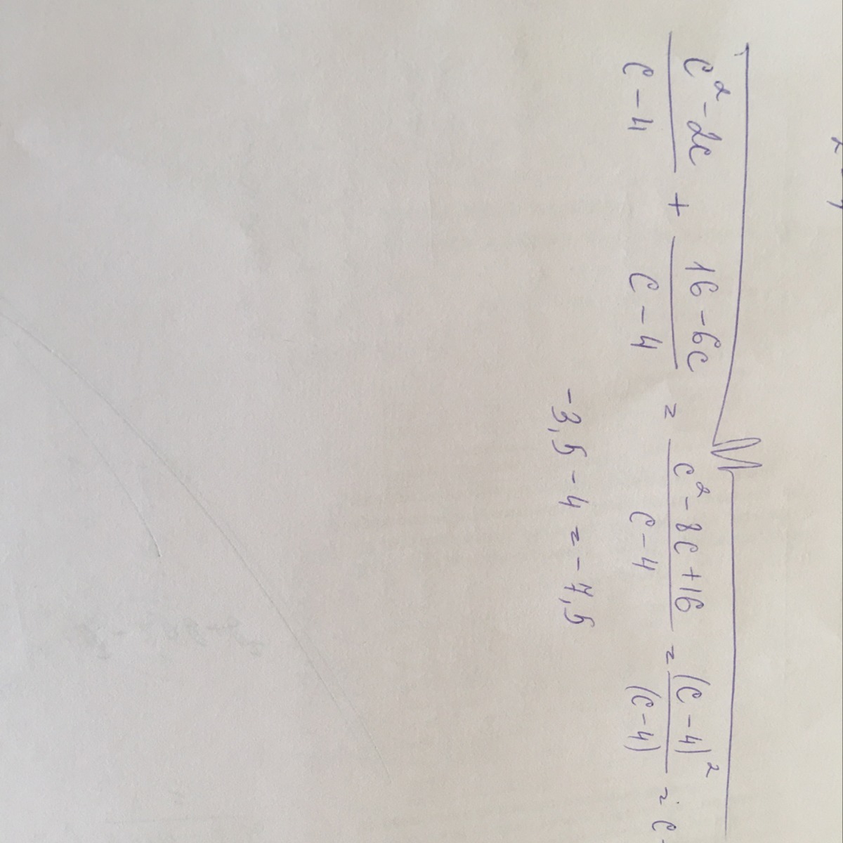 (с^2 - 2c)/(c - 4) - (16 - 6c)/(4-c) = (c^2 - 2c + 16 - 6c)/(c-4) = (c^2 - 8c + 16)/(c-4) = (c-4)^2/(c-4) = c - 4 = -7.5