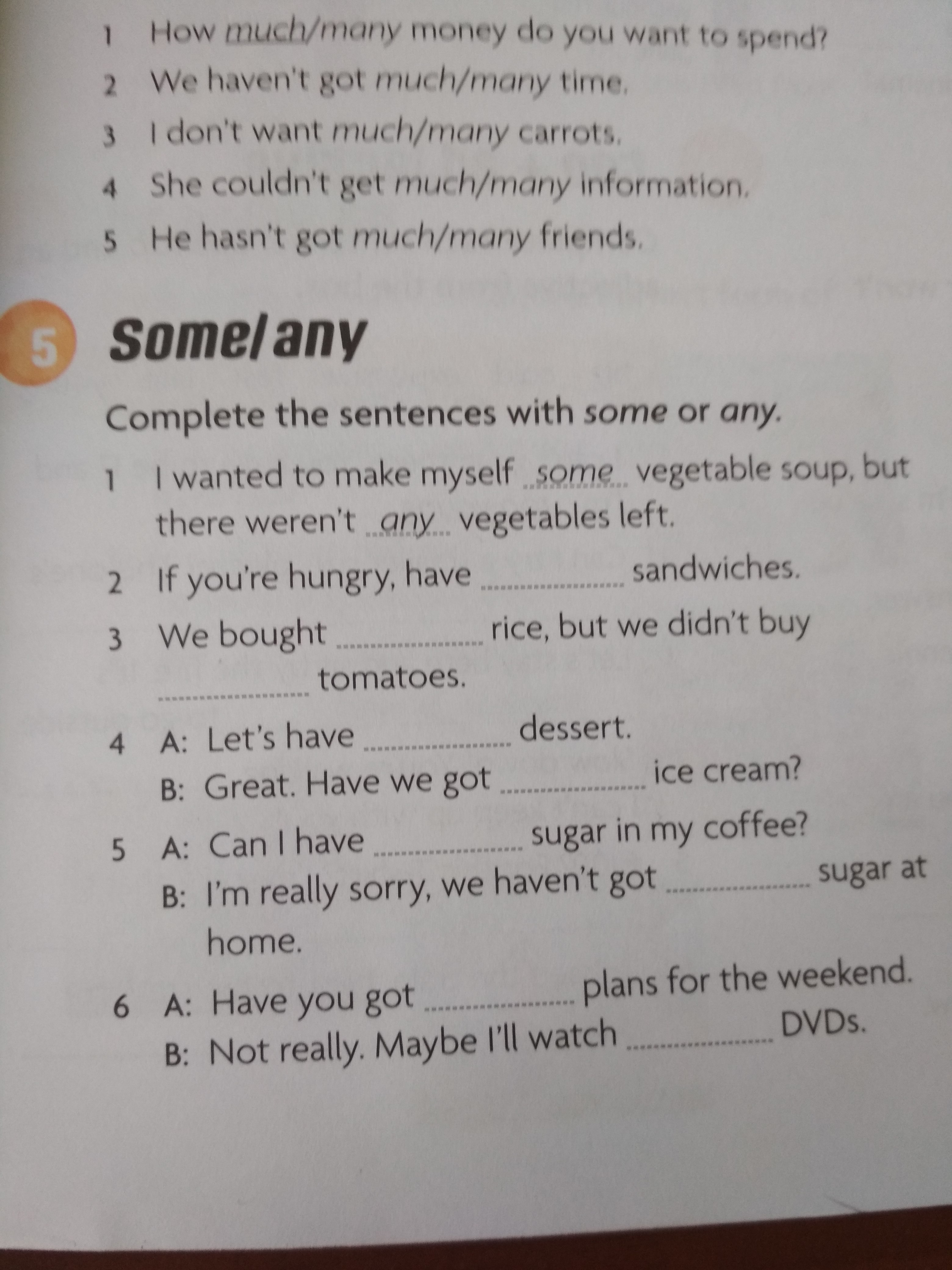 2. Some 3. Any, some 4. Some, any 5. Any, any 6. Any, some