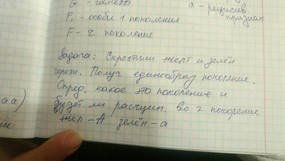 Скрестили жёлтые и зелёные горохи. Получилось единообразные поколения. Определите какое это поколение и будет ли расщепляться во 2 поколение. Жёлтые- А, зелёные-а