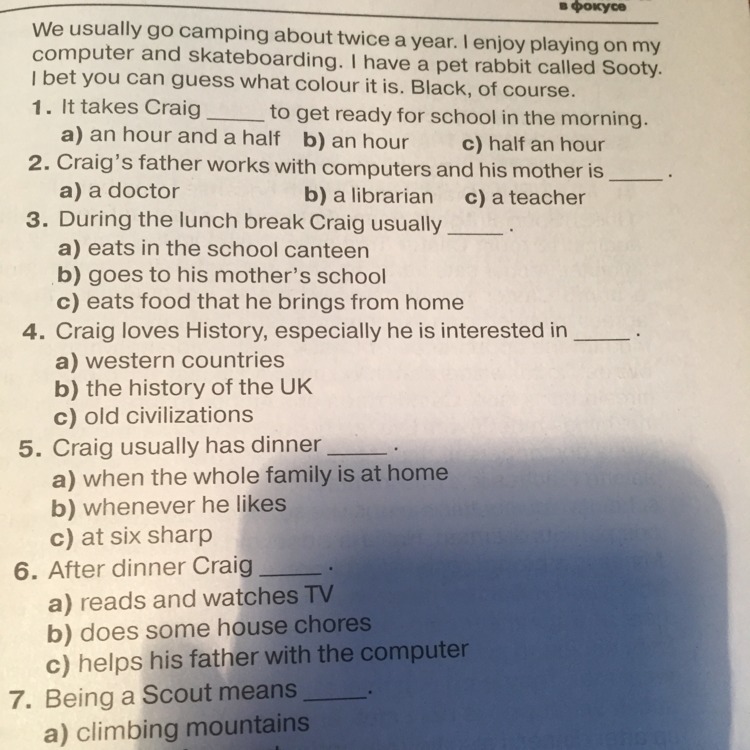 1) Сколько времени нужно Крейгу, чтобы собраться в школу?