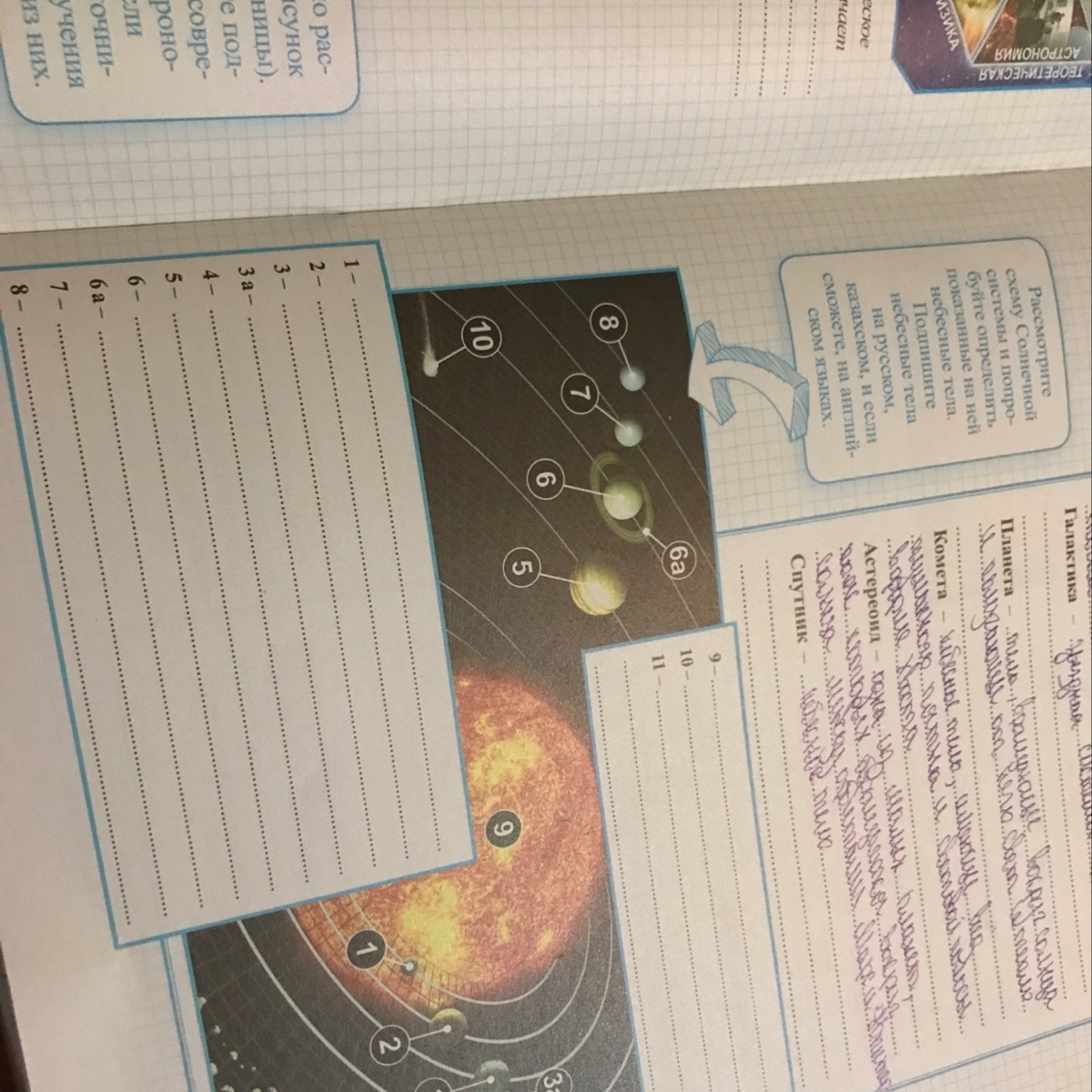 рассмотрите схему солнечной системы и попробуйте определить показанные на ней небесные тела. подпилите небесные тела на русском, на казахском и если сможете на английском языках. срочно!