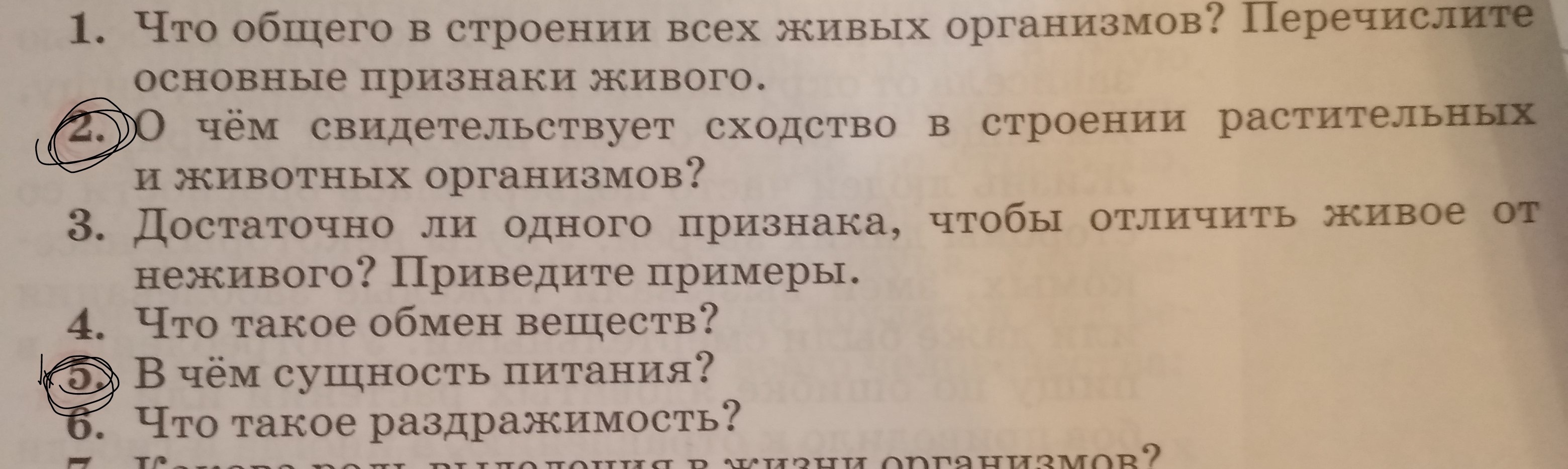 2)Объщее происхождение, клеточное строение, химический состав(оргонические вещества) , наличие обмена веществ, размножение, рост, развитие, наличие кодирования, передачи и реализации наследственно информации 5)Поддержания жизни и здоровья живого организма с помощью пищи-процесс поглощения пищи живыми организмами для поддержания нормально течения физиологических процессов жизнедеятельности